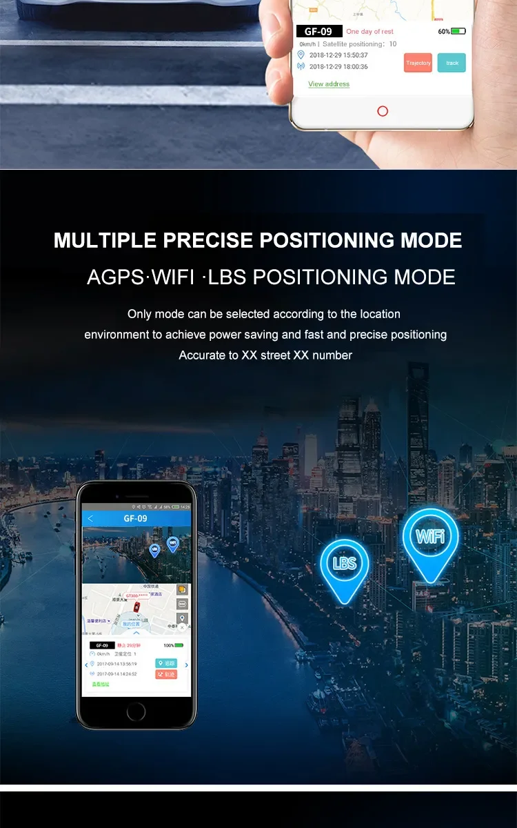2. AGPS + LBS + WiFi positioning, real-time tracking.