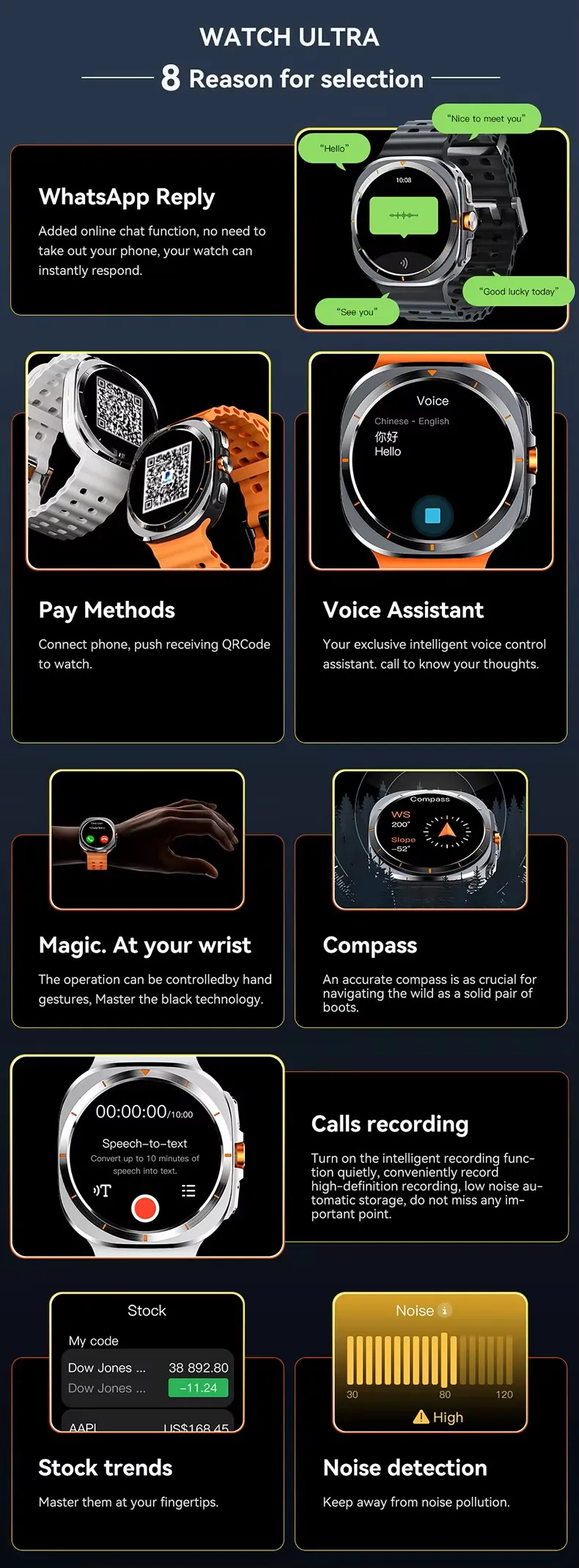 health information,SOS alarm, video custom dial push. Wireless charging, BT call, IP68 waterproof, voice assistant,NFC