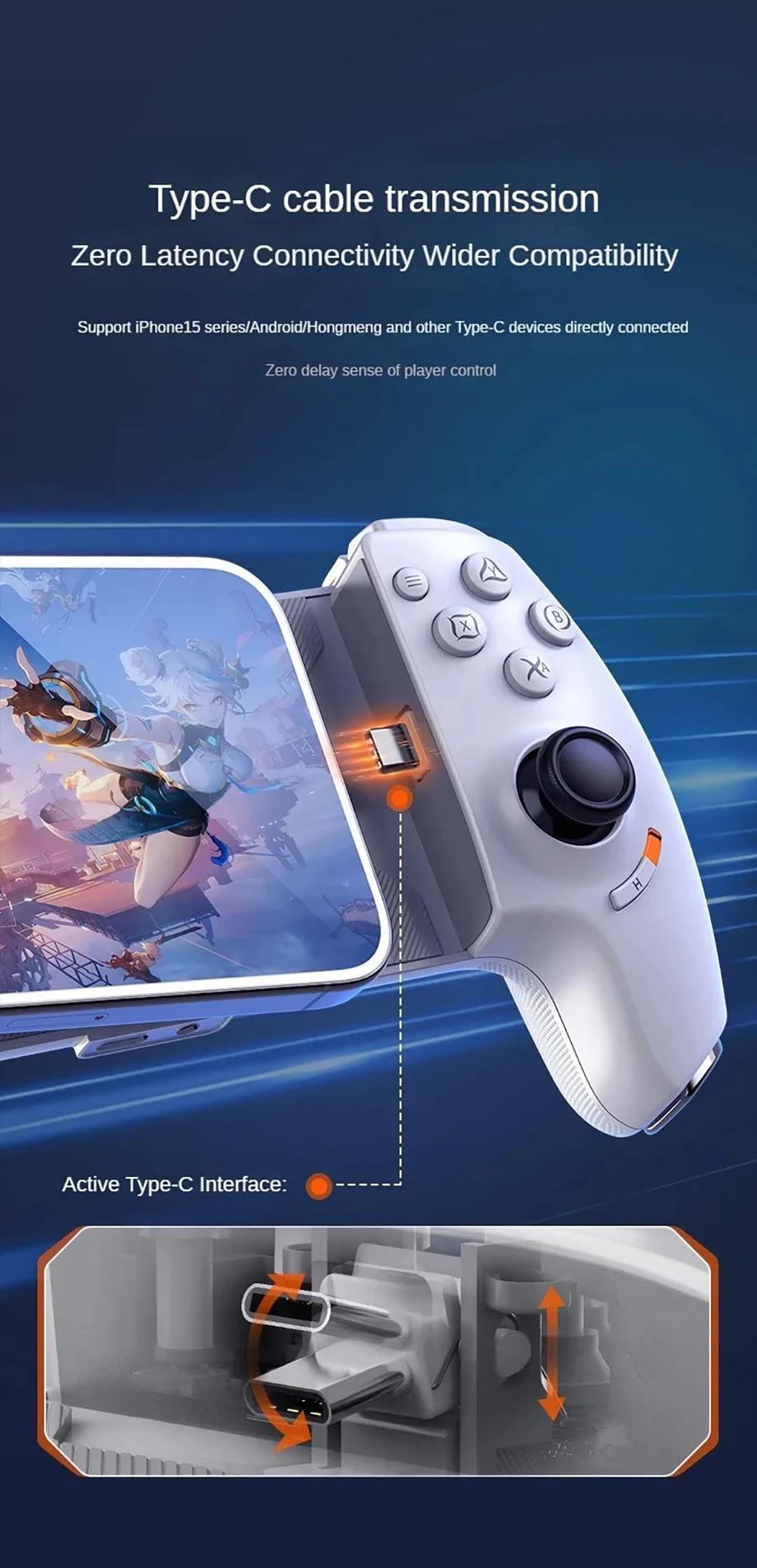 Type-C Wireless BT Gamepad With Hall Joysticks for Phone Android Switch IOS Controller