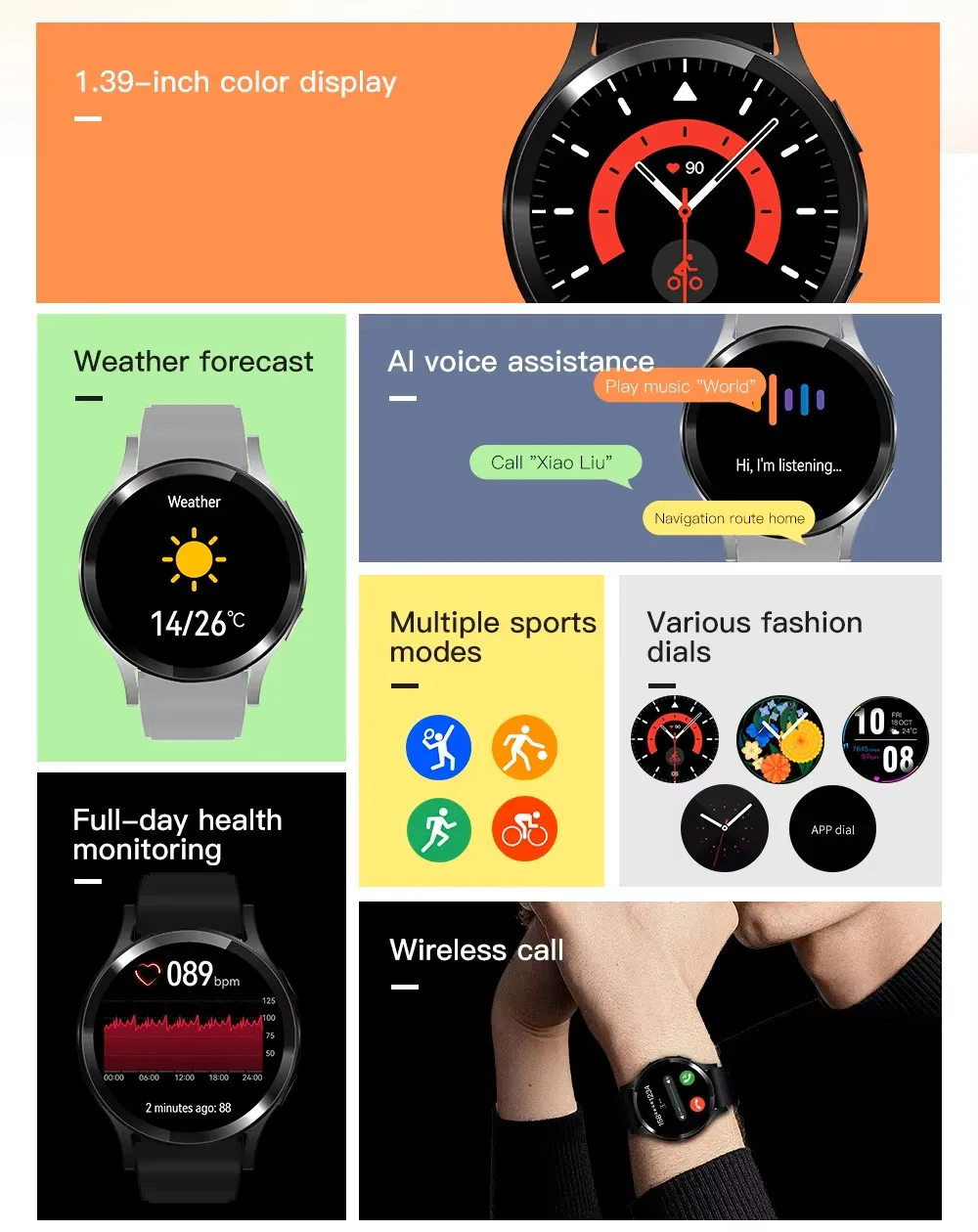 Tags: AI, blood oxygen, BLUETOOTH, heart rate monitor, SMARTWATCH, VOICE ASSISTANT