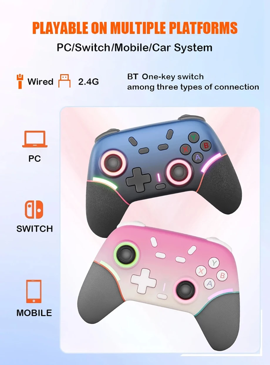 Be the first to review “Wireless BT Controller Mobile Phone Game Controller Joystick RGB Light Gamepad for Phone Android IOS NS/PC Gamepad” Cancel reply
